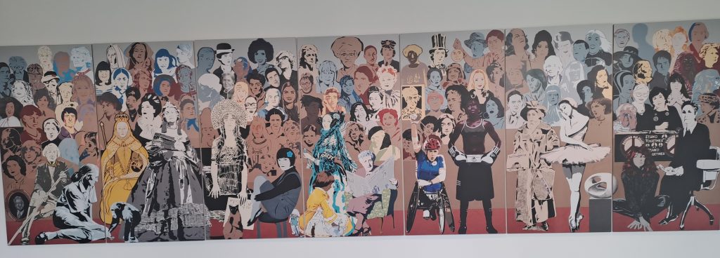 Just before the end of Women’s History month this year I visited Pallant House Gallery in Chichester, a fave jaunt always as their collections of British art to my mind seem better curated than those at Tate Britain. A local friend had told me to look at a new mural on the ground floor..