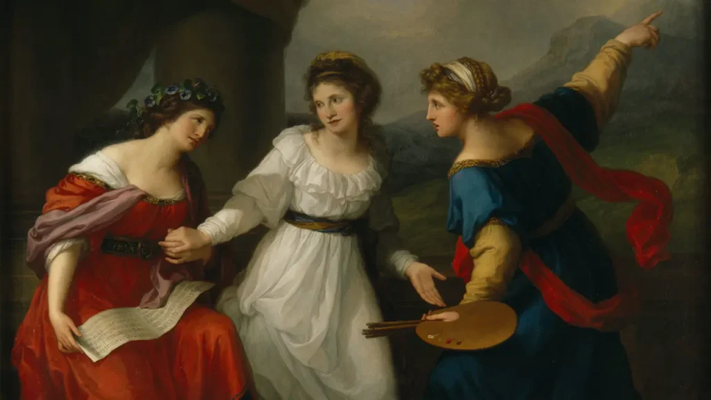 Angelica Kauffman (1741–1807) was a thoroughly modern woman: having enjoyed great success with her portraits of British Grand Tourists in Florence, she moved to London at the age of 25 and set up a studio there.