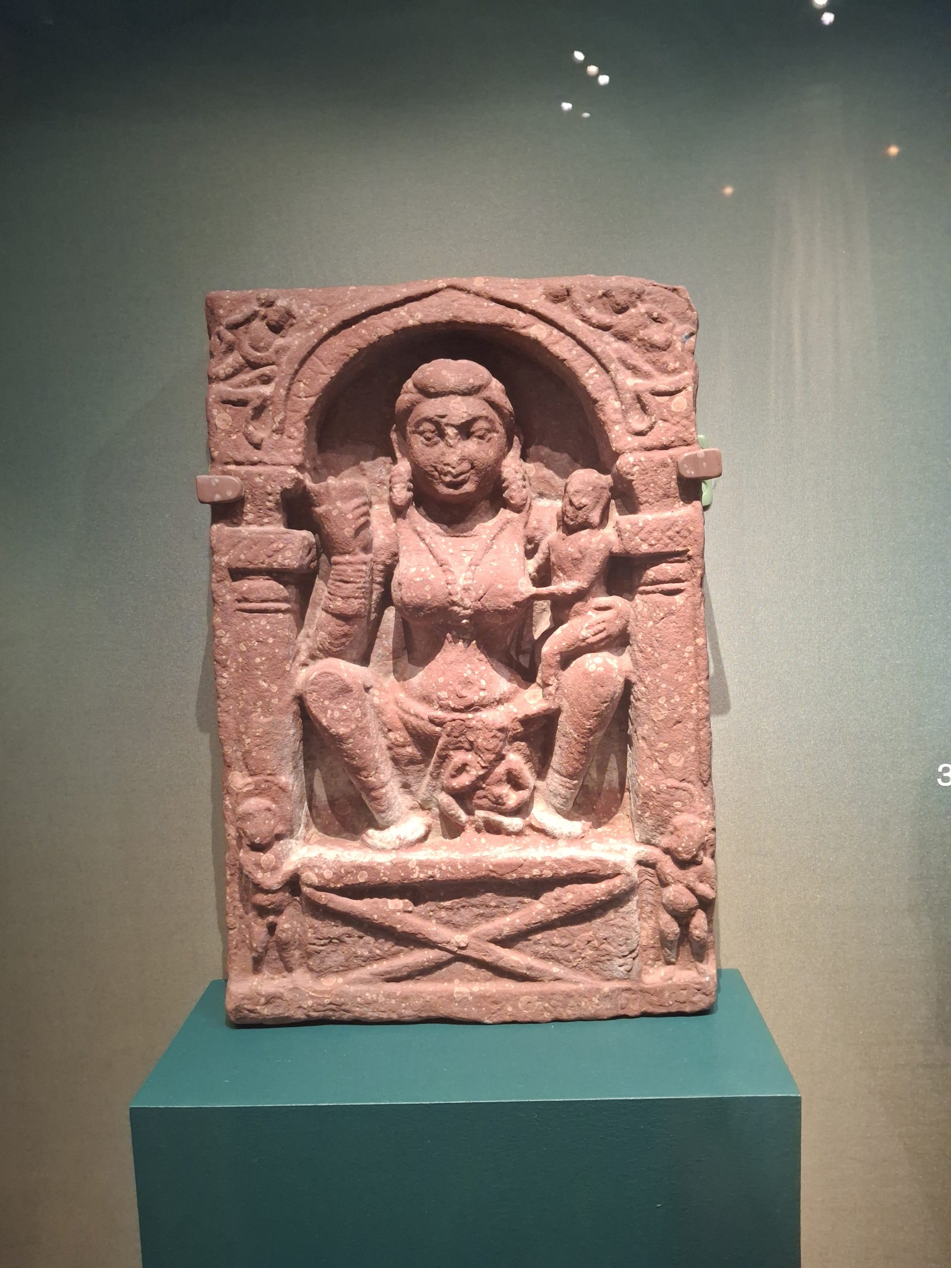 Sometimes yakshis are depicted on terracotta plaques; although the names of these deities are mostly unknown today, the sheer number of plaques discovered shows that their worship was central to the daily lives of people in India. Later, some yakshis became prominent, popular goddesses. According to Buddhist tradition, Hariti was associated with smallpox, and the stealing and killing of children to feed her large family. To show her how much these parents were suffering, the Buddha briefly hid one of Hariti’s children beneath his rice bowl. She was so distraught that from that moment she vowed to protect all children and women in childbirth.