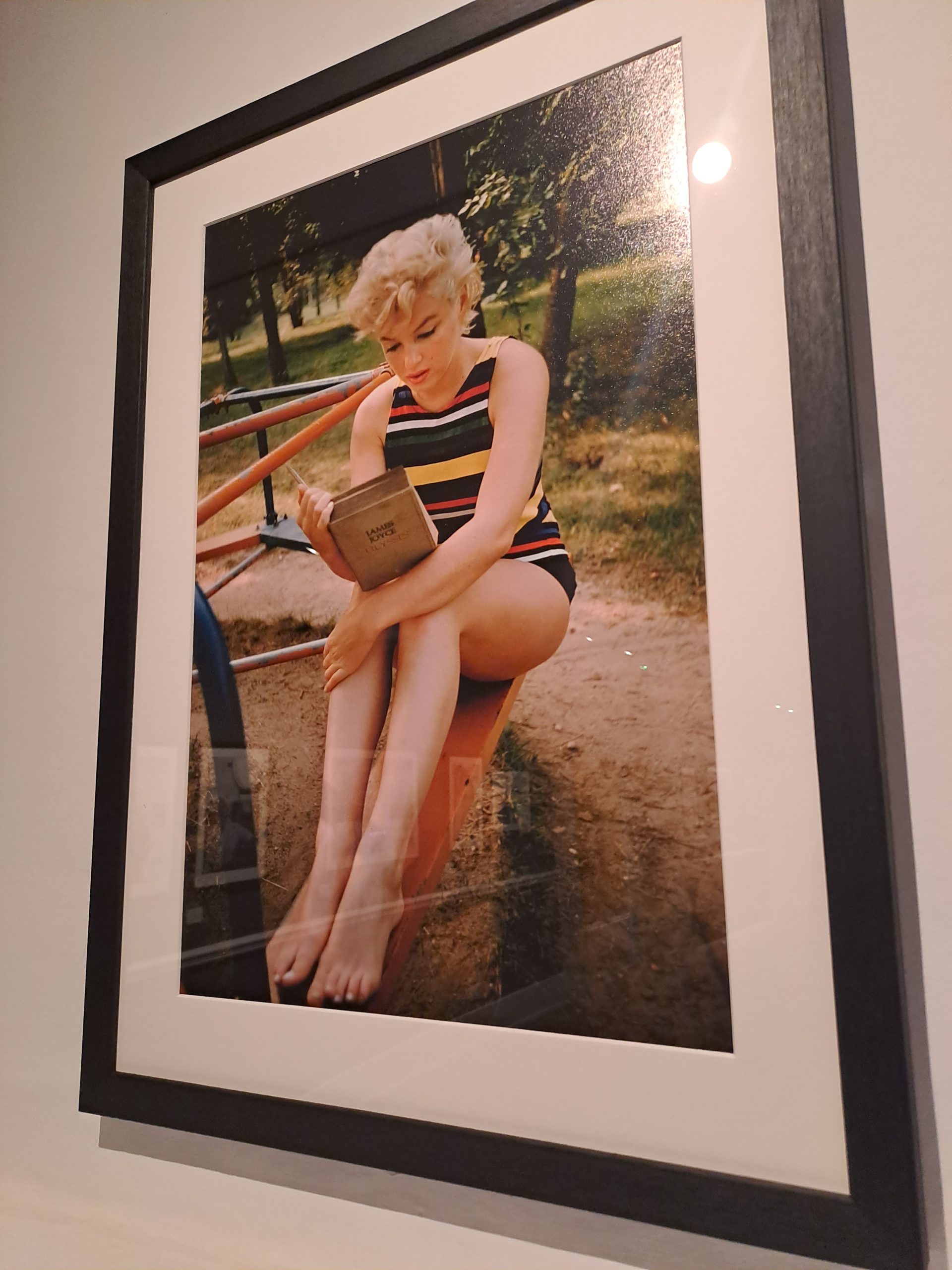 Arnold met Marilyn Monroe in 1954, and photographed her on film sets for several years. The exhibition includes a short film with Arnold speaking of their relationship. The famous photo of Marilyn reading James Joyce’s Ulysses is one of the few colour photographs in the exhibition.